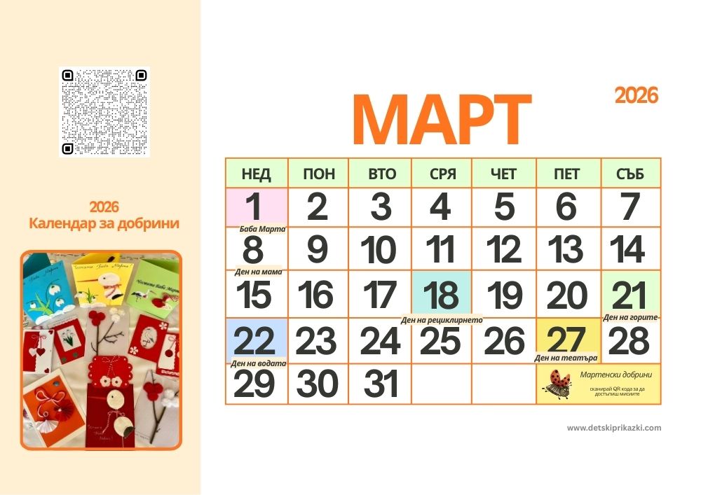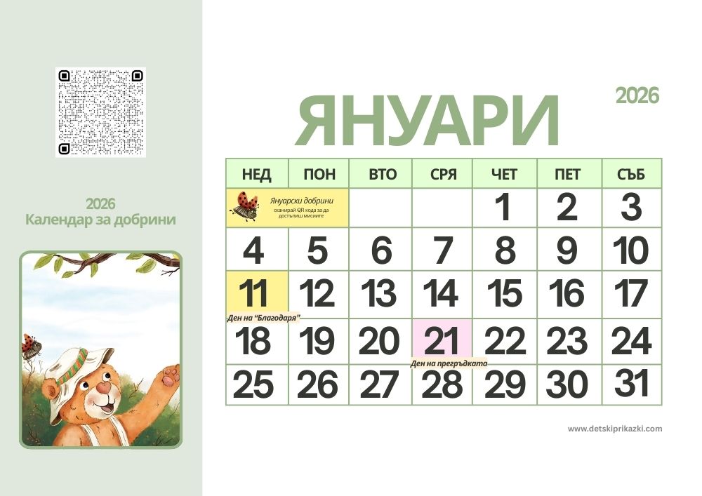 Календарът за добрини отбелязва ключови международни дни всеки месец.